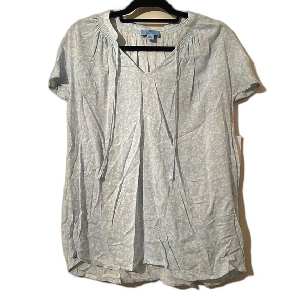 NEW CECE Blouse Womens Size Large 12 14 Light Blue Floral Top Short Sleeve Smock
