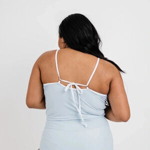 NEW CENTARA TOP | POWDER BLUE WITH WHITE PIPING Coral Reef Swim