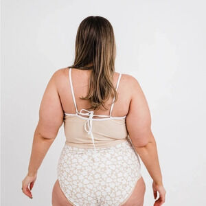 NEW CENTARA TOP | TAN WITH WHITE PIPING Coral Reef Swim