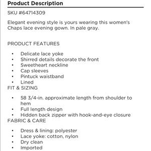 NEW CHAPS Lace Yoke Evening Gown Dress Gray Size 2