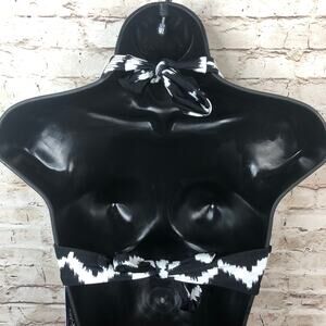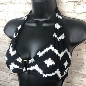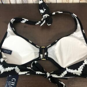 NEW CHAPS Womens 10 Chevron Print Halter Bikini Swim Top Black White