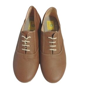 NEW CHARLESTON SHOE CO. Light Brown Leather Lace Up Loafers Tan Flats Sz 7