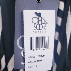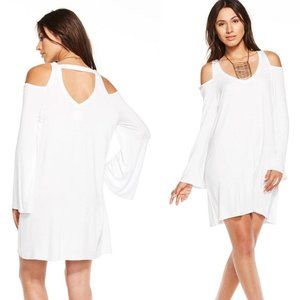 NEW CHASER Dress Black White Mini SMALL V-Neck Cold Shoulder Long Sleeve Stretch