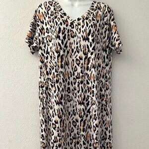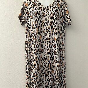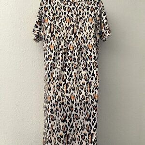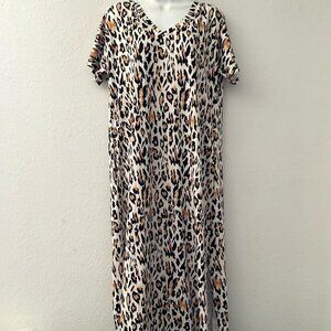 NEW CHEETA MAXI DRESS CASUAL LOOSE LONG BEACH SPLIT DRESS WITH POCKETS XL