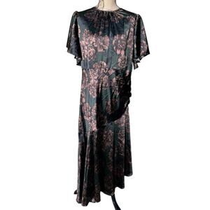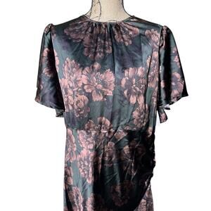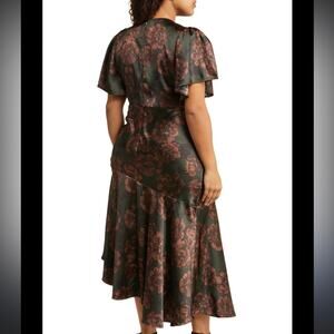 NEW CHELSEA28 Asymmetric Hem Satin Dress in Green Brown Explosive Floral size 1x