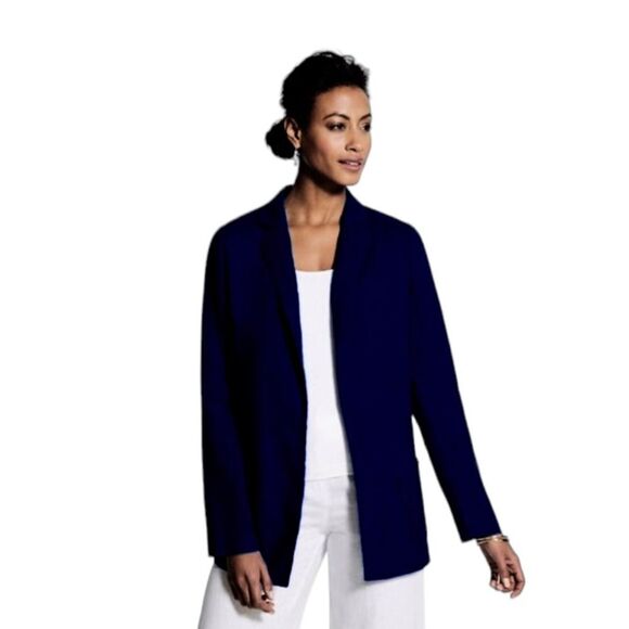 NEW CHICO'S Women's Soft Summer Linen Blazer in Solid Black Size 1 ( Medium )