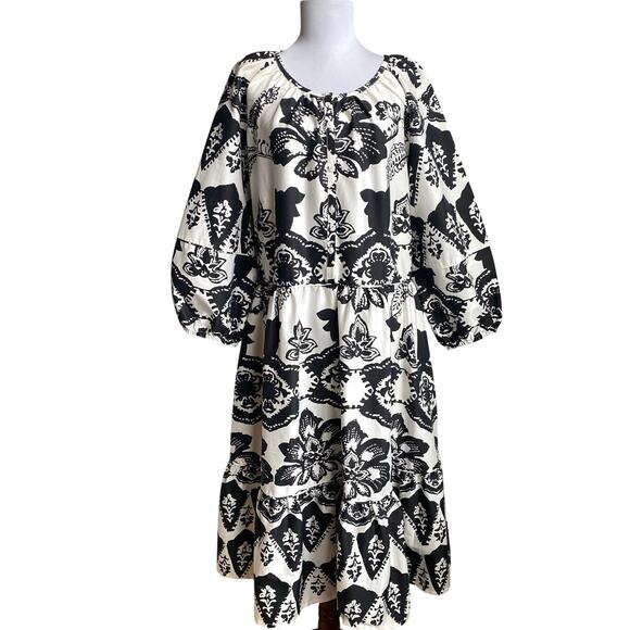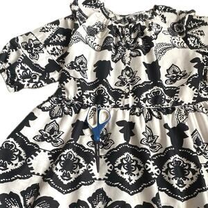 ***New without tags, but a small flaw: there appears to be some color transfer from the black print. I only noticed it when steaming the dress, as it’s only visible up close. Flaw shown in photos***
