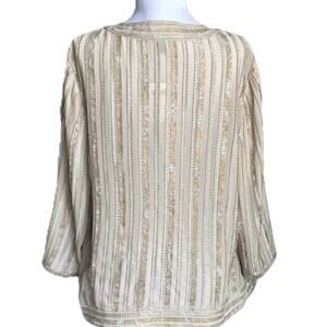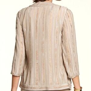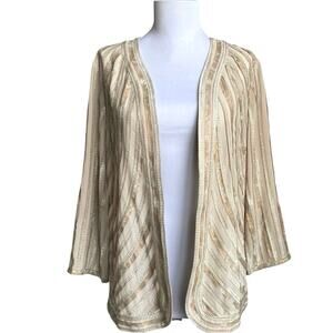 NEW CHICO’S Travelers Gilded Stripe Open Sheer Light Jacket SZ 1 M Tan Metallic