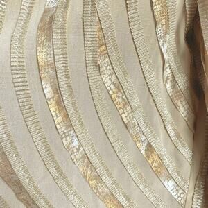 - Tan beige color with textured stripes of metallic silver, gold and rose gold throughout