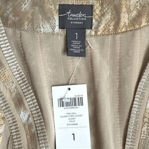 NWT CHICO’S Travelers Gilded Stripe Open Sheer Light Jacket SZ 1/M Tan Metallic