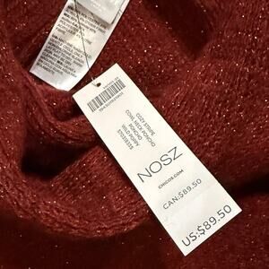 NEW CHICOS Women’s Red Cozy Stripe Cowl Neck Poncho Sweater Fringe Shimmer OS