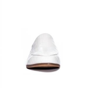Take a bold step forward in this croc leather mule. In luxe faux snakeskin, this backless loafer is equal parts tame and wild. Synthetic sole. Heel measures approximately 1". Stacked heel. Loafer topline. Slip-on. Mule flat.