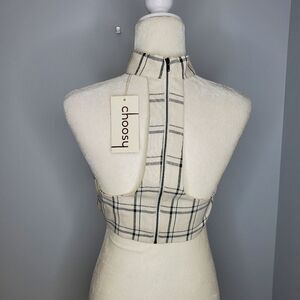 NEW CHOOSY crop top plaid power moves back zip bandeau 8