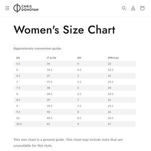 Our products are handmade by Italian craftsmen and craftswomen in Italy using the finest leathers and lasts, our fitting is true European sizing. For US sizing ( look in photo section )