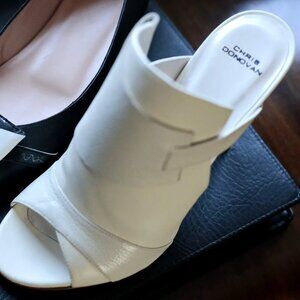 NEW CHRIS DONOVAN Made In Italy Leather Pegasi Heeled Mules in white 1225 18t9