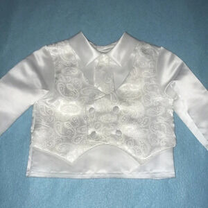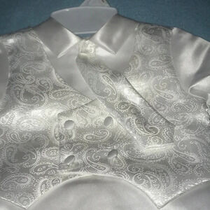 NEW CHRISTENING APPAREL attached paisley print vest and tie, elastic waistband, buttons up the back. Satin feel. Great also for weddings, birthdays, baptisms etc.