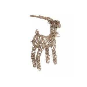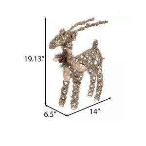 Complement your holiday decorations with pieces like this Champagne Glitter Reindeer. It has a frame shaped like a reindeer that's wrapped in jute string and covered in multiple types of glitter and sequins. The reindeer has a burlap ribbon with a glittering pine needle and pinecone accent set on its neck. For a rustic piece that's also got shine, add this unique reindeer to your home decor.