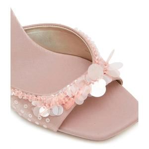 Elevate your evening attire with the Women's Juliana Sandal by Circus by Sam Edelman, a charming choice in vibrant pink. Crafted from satin for a luxurious sheen, this sandal features an open toe design and a comfortable 2.125-inch kitten heel, perfectly blending glamour with practicality. The slip-on style is highlighted by dazzling jeweled accents, making it an elegant choice for a dinner party or any stylish occasion. Ideal for the minimalist trend and designed for women in medium width, this sandal is a springtime staple.