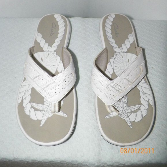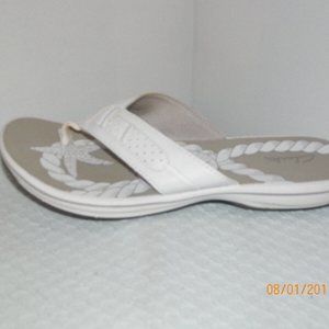 NEW CLARKS WHITE LEATHER SLIDE THONG SANDALS SZ 9