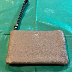 NEW COACH Leather Corner Zip Wristlet In Gold Taupe #58032