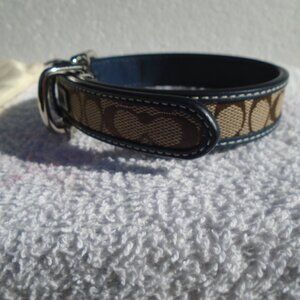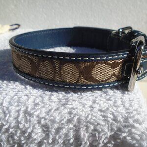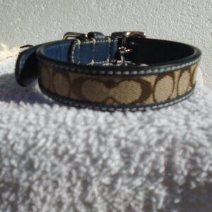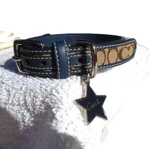 NEW COACH NAVY BLUE LEATHER BROWN JACQUARD SIGNATURE C DOG PET COLLAR 61353 S