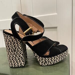 NEW WITHOUT BOX COACH NELLY ANKLE STRAP ESPADRILLE PLATFORM SANDALS SZ 9. OPEN TOE WITH BUCKLE ANKLE STRAP. HEEL IS 4.75”.