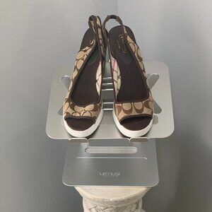 Coach Slingback Wedge Sandals in Khaki and Canvas Signature Print
