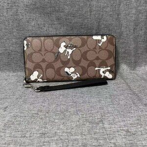 NEW COACH PEANUTS Round Zip Long Wallet Snoopy Black Round Zipper