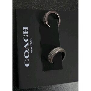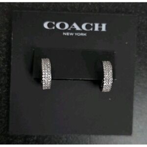 NEW COACH Pavé Huggie Earrings Dangle Hoop Silver Rhinestone