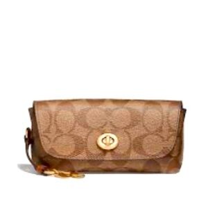 NEW! COACH Sunglasses Case w/ Dogleash Clip Signature Coated Canvas +Smooth Lthr