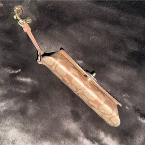 This COACH Sunglasses Case with Dogleash Clip in Tan/Brown Signature Coated Canvas with Smooth Leather Accent & Goldtone Hardware is PERFECT to keep your glasses or sunglasses handy! This case is Brand New Without Tag & Never Been Used. I purchased for a trip that ended up being canceled = your gain! It’s ready for all your Adventures! 🌺