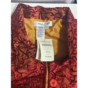 NEW COLDWATER CREEK SZ PXL RED EMBROIDERED/BEADED/SEQUINED/SCROLL FLOCKED JACKET