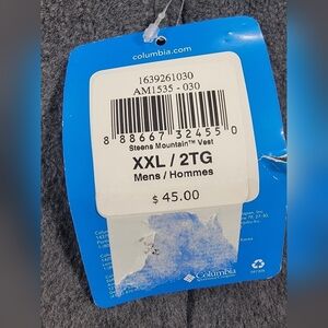 NEW COLUMBIA Vest Gray Fleece Steens Mountain Full Zip Mens XXL 2XL Pockets NWT