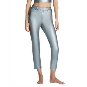 Faux leather (55% polyurethane 44% viscose 1% elastane). Front rise: 10 7/8"; inseam: 28 1/2" for size medium. Fit-tested by real women. Four-way stretch and high recovery. Real leather look and feel. Belt loops. Pockets. Machine washable.