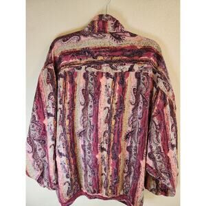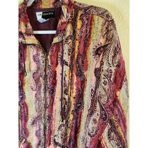 NEW CONCEPTS 100% Silk Red Paisley 90s Style Print Zip Up Jacket Womens XL