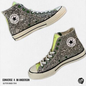 NEW CONVERSE x JW ANDERSON GLITTER CHUCK 70 HIGH SNEAKER IN GOLD / SILVER