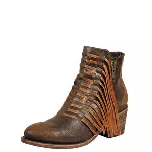 NEW CORRAL BOOTS Distressed Leather J Toe Ankle Boots With Fringe Trim 1065Tn