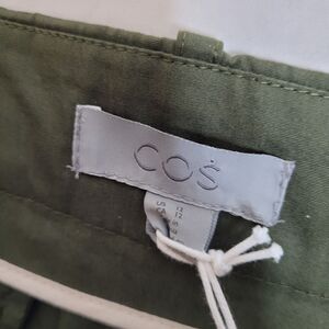 NWT utility style olive green midi a-line minimalist skirt by COS. Minor indents from hangers shown in photos. Great for a clean minimalist style. Cotton.