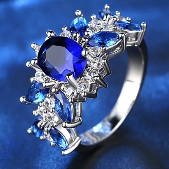 Costume jewelry, date night, formal jewelry, fashion jewelry, gift for her, blue stones ring, wedding, party, Mother's Day, stocking stuffer, faux stone ring.