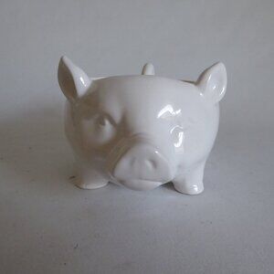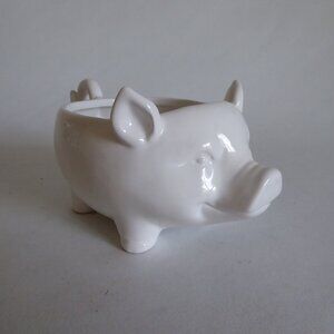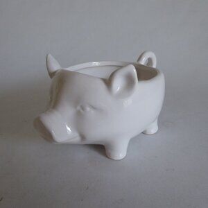 New, never used for its purpose, Creative Co-op brand, white ceramic, pig shaped bowl. His swirly tail creates the handle. Microwave, oven and dishwasher safe. (See photos for details.) Items come from a pet and smoke free home.