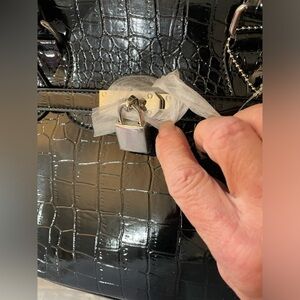 New Gorgeous black crocodile Handbag LIKE bag, long strap, silver hardware,
