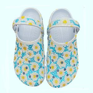 NEW CROCS Custom Bling Baya Seasonal Floral Bedazzled Rhinestones & Pearl Clog