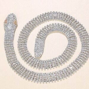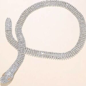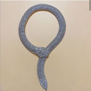 NEW CRYSTAL SNAKE SERPENT WHITE GOLD VINTAGE CHOKER NECKLACE