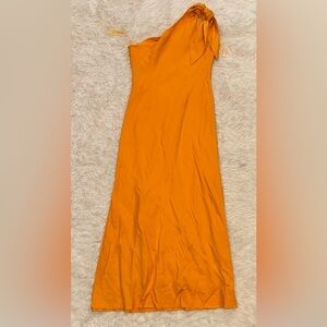 NEW CULT GAIA Kamila One Shoulder Linen Maxi Dress butter yellow Womens Sz M