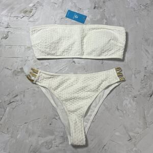 NEW CUPSHE White Bandeau Mid-Rise Bikini Set SIZE L