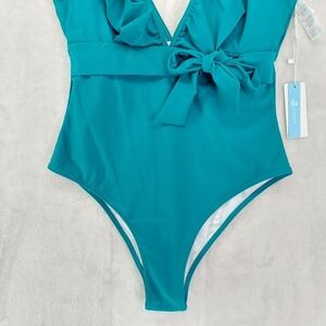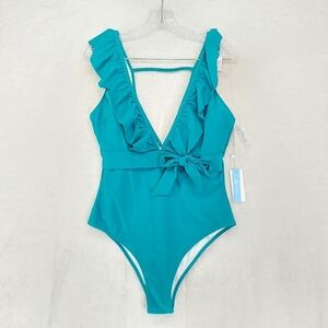 NEW CUPSHE Women's Ruffled V Neck Tie One Piece Summer Beach Swimsuit P2805