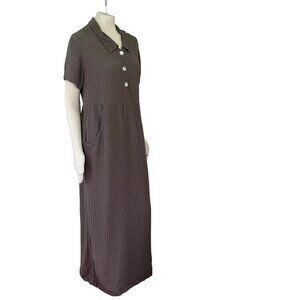 NEW CUT LOOSE Short Sleeve Textured Popover Maxi Dress in Mossy Brown SZ S