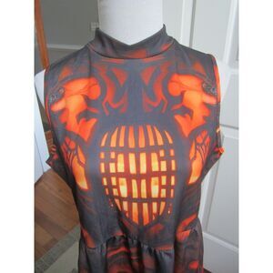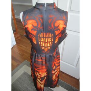 NEW CUTE HALLOWEEN DRESS WILL GO FROM WORK, SCHOOL TO TRICK OR TREAT. SLEEVELESS DRESS HAS A BACK ZIP OPENING, FITTED WAIST AND FULL SKIRT. POLYESTER AND SPANDEX. UNBRANDED. ADULT XL BUST 38" WAIST 32-33" LENGTH 37".