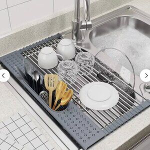 NEW! CW HOME Roll Up Dish Drying Rack over the sink stainless steel silicon