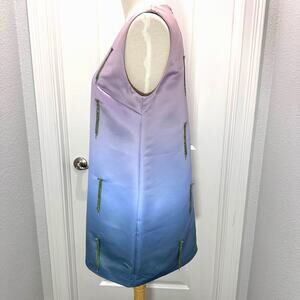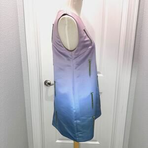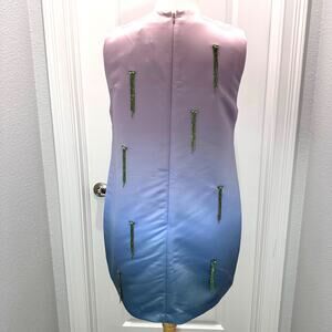 NEW- CYNTHIA ROWLEY- SATIN- RHINESTONE TASSELS- OMBRE PINK BLUE- SHIFT DRESS. Women Size Large. New with tag. Featuring a gorgeous ombre pink and blue color pattern, this dress is sure to turn heads wherever you go. The rhinestone fringe design details add a touch of sparkle and glamour. Center back concealed zipper. Round neck. Sleeveless. 100% polyester. Dry Clean Only. Fitted About 31.5 inches from shoulder to hem.